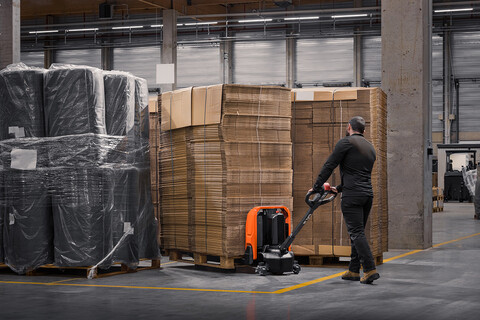 Le transpalette BT Tyro convient au transport ponctuel de marchandises légères. Idéal pour la manutention de marchandises dans les petits magasins ou les supermarchés, pour les recharges à bord/à l'arrière d'un camion, pour les applications sur le hayon d'un camion ou pour les activités légères sur les petits sites de production.